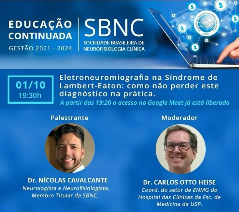 Palestrante convidado - Aula sobre síndrome de Lambert-Eaton para a Sociedade Brasileira de Neurofisiologia Clínica - 2024